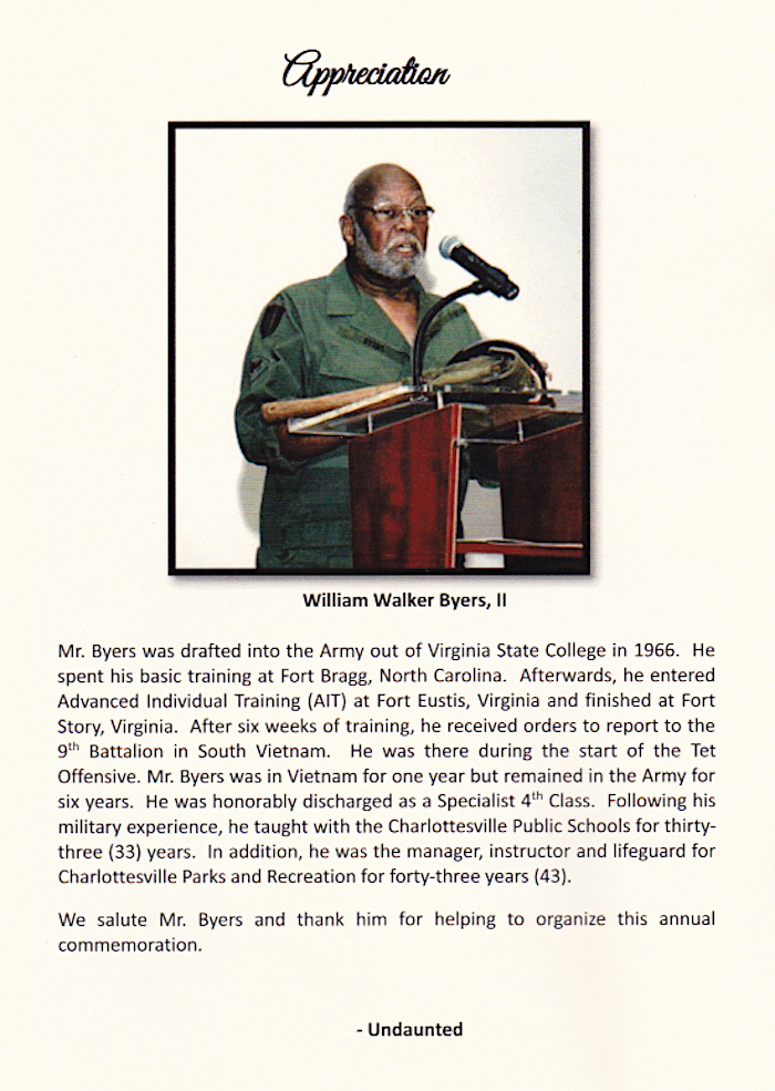 Above and Beyond the Call of Duty December 20, 2019December 20, 2019 ~ Veterans Committee of Central Virginia Share this: Click to share on X (Opens in new window) X Click to share on Facebook (Opens in new window) Facebook Like Loading... Related Published by Veterans Committee of Central Virginia The Vet Committee's mission is to educate people about the historically segregated fighting units of the United States Military and the experiences of present-day Veterans. View all posts by Veterans Committee of Central Virginia